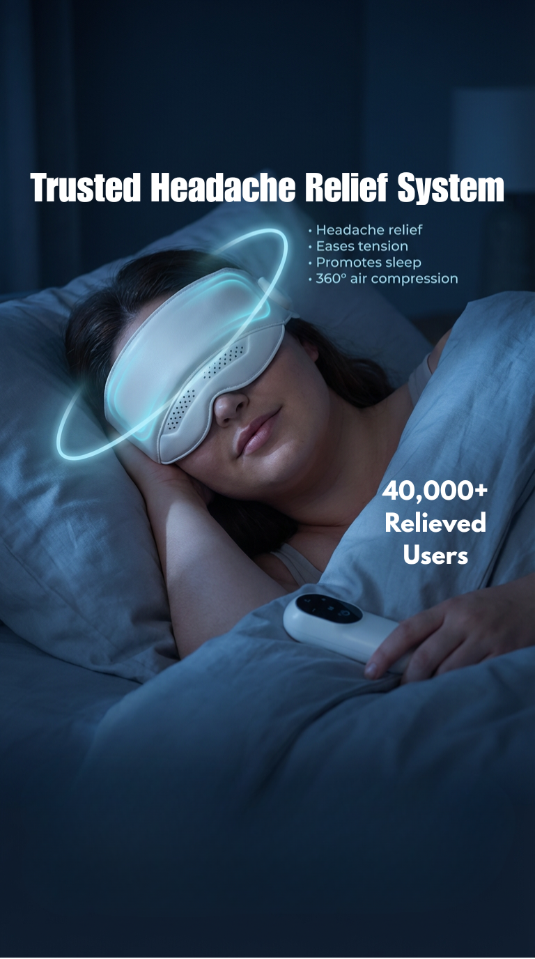 That moment when the pressure hits exactly the right spot—and your head finally lets go. Gentle compression and warmth melt tension away, leaving deep, immediate relief.